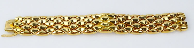 Lady's Vintage Heavy 18 Karat Longines Manual Movement Bracelet Watch. Stamped 750. Good vintage condition. Appears to be running. Please note the gallery does not warranty the running condition of watches. Measures 7/8" W, 7" L. Approx. weight: 66.95 pennyweights. Shipping $34.00 (estimate $2000-$2500)