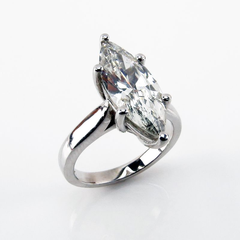 Approx. 3.14 Carat Marquise Cut Diamond and 14 Karat White Gold Engagement Ring. Diamond H color, SI2 clarity
