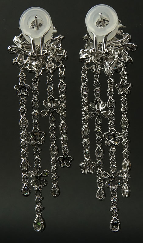 Approx. 6.0 Carat Round Brilliant Cut Diamond and 18 Karat White Gold Chandelier Earrings