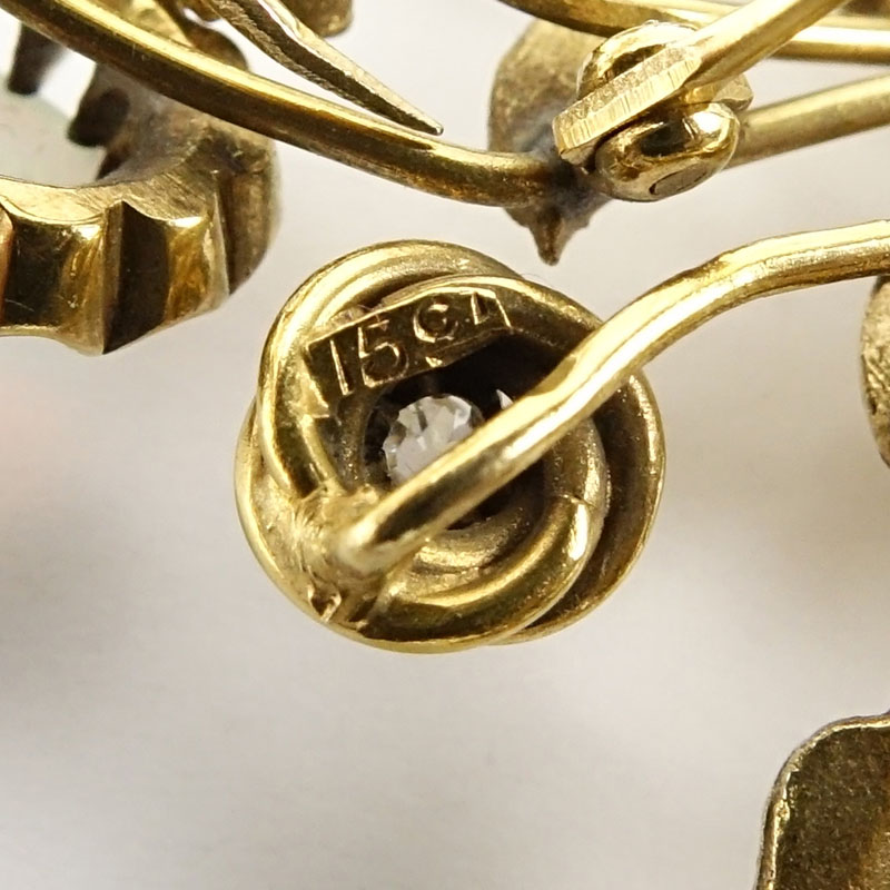 Vintage 15 Karat Yellow Gold, Diamond and Multi Stone Stick Pin Brooch. Stamped 15K. Good vintage condition. Measures 2-1/4" H, 1-7/8" W. Approx. weight: 10.40 pennyweights. Shipping $30.00 (estimate $200-$300)