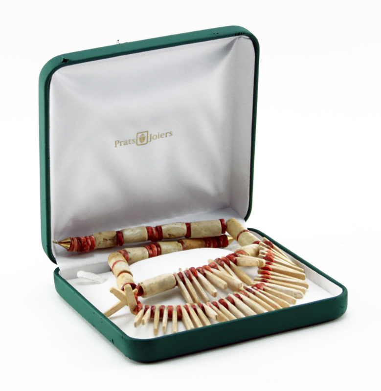 A Pre-Columbian Tayrona Red and White Coral Bead Necklace. Unsigned. Good condition. Measures 18" L with 3" drop. Shipping $28.00 (estimate $200-$400)