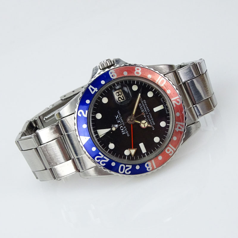 Circa 1959 Man's Rolex GMT Master Stainless Steel Watch with Pepsi Bezel