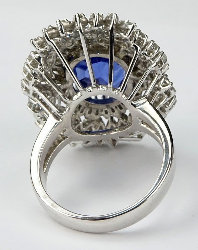 GIA Certified 11.25 Carat Oval Cushion Cut Unheated Ceylon/Sri Lanka Sapphire, 4.50 Carat Diamond and Platinum Ring