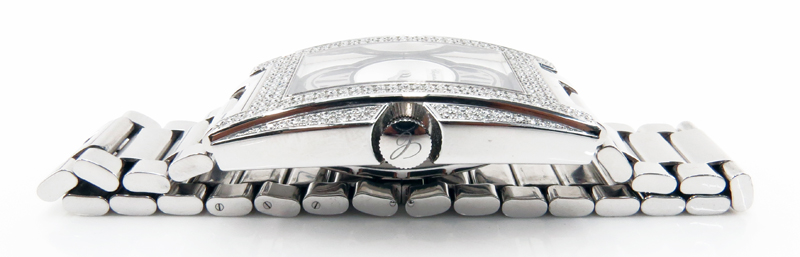 Man's Chopard 18 Karat White Gold and Pave Set Round Cut Diamond Bracelet Watch