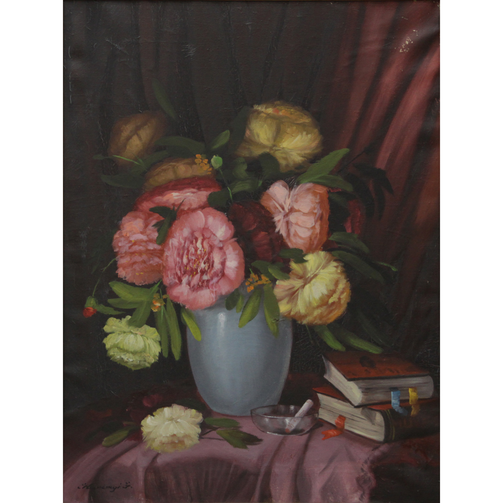 Romanian School Still Life Oil on Canvas Painting Signed Lower Left