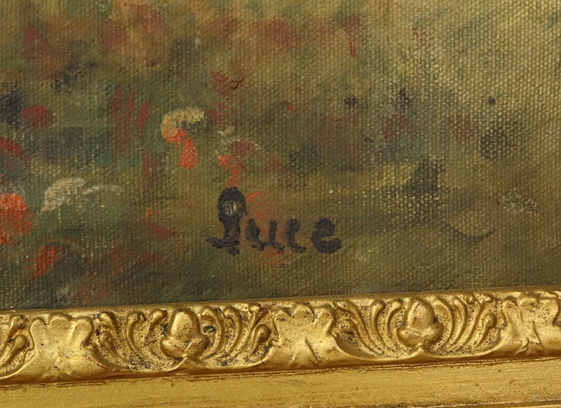 Large American School Oil on Canvas "Rural Landscape". Signed lower right Galle?. Good condition. Measures 24" x 36", frame measures 29-1/4" x 41". Shipping: Third party (estimate $200-$400)