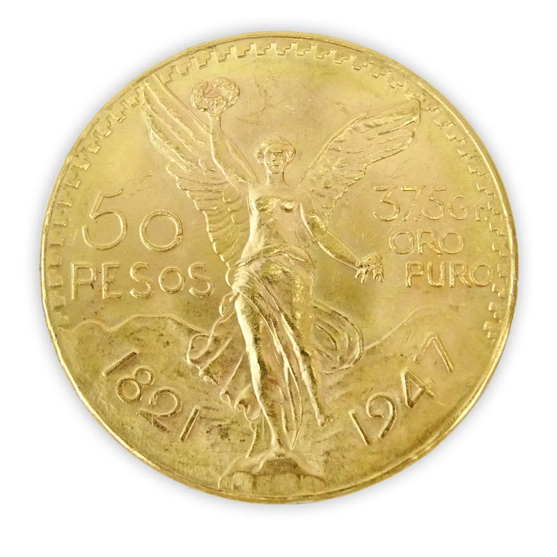 1821-1947 Mexican 50 Pesos Gold Coin. Approx. 41.8 grams. Not graded. Shipping $26.00 (estimate $1000-$1500)