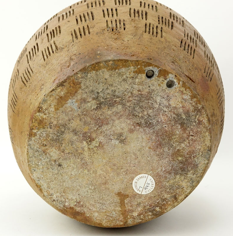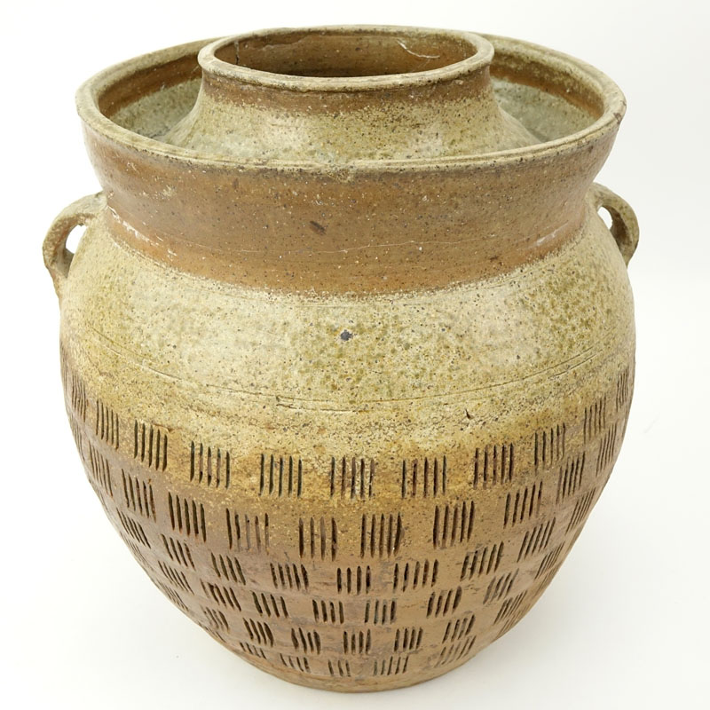 Chinese Warring States Period (475-221) Beige Painted Stoneware Storage Vessel. Unsigned. Typical losses and wear. Measures 10-1/2" H. Shipping: Third party (estimate $800-$1000)