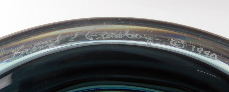 Brand & Greenberg Glass Centerpiece Bowl. Signed and dated 1990. Good condition. Measures 9" H x 21-1/8" Dia. Shipping: Third party (estimate $300-$500)