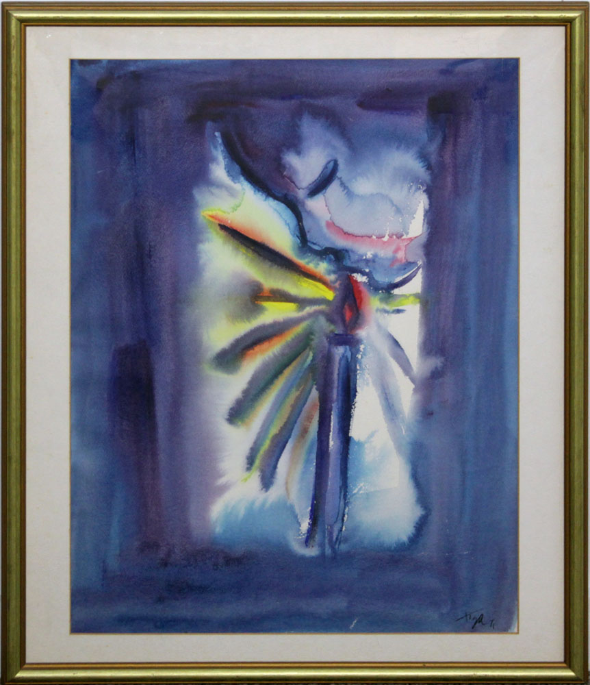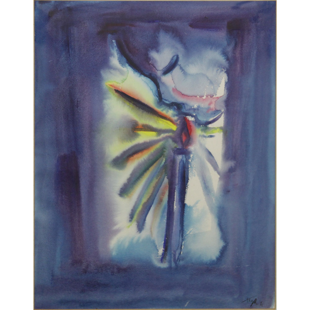 Jean Claude Garoute (Tiga), Haitian (1935-2006) Mixed Media/Soleil Brule, "Untitled" Abstract Painting on Paper. Signed lower right. Dated 1971. Some spotting to matting, good condition. Measures 24-3/4" H x 17-3/4" W, frame measures 29-3/4" H x 23-1/2" W. Shipping $225.00 (estimate $1200-$2000)