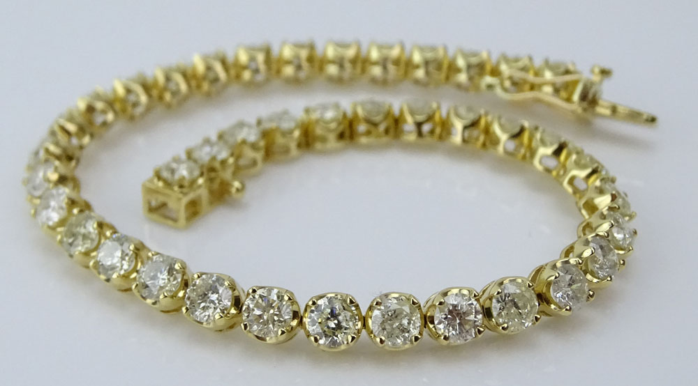 8.52 Carat Round Brilliant Cut Diamond and 18 Karat Yellow Gold Tennis Bracelet.