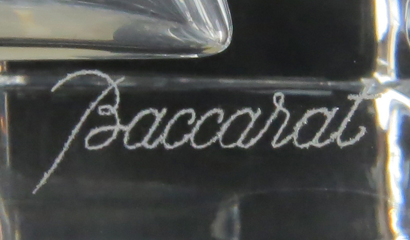 Baccarat "Bouquet" Crystal Vase in Original Box #792609. Stamped. Includes booklet, original sticker and store label on the underside. Good condition. Measures 8" H x 6-1/2" W. Shipping: Third party (estimate $150-$250)