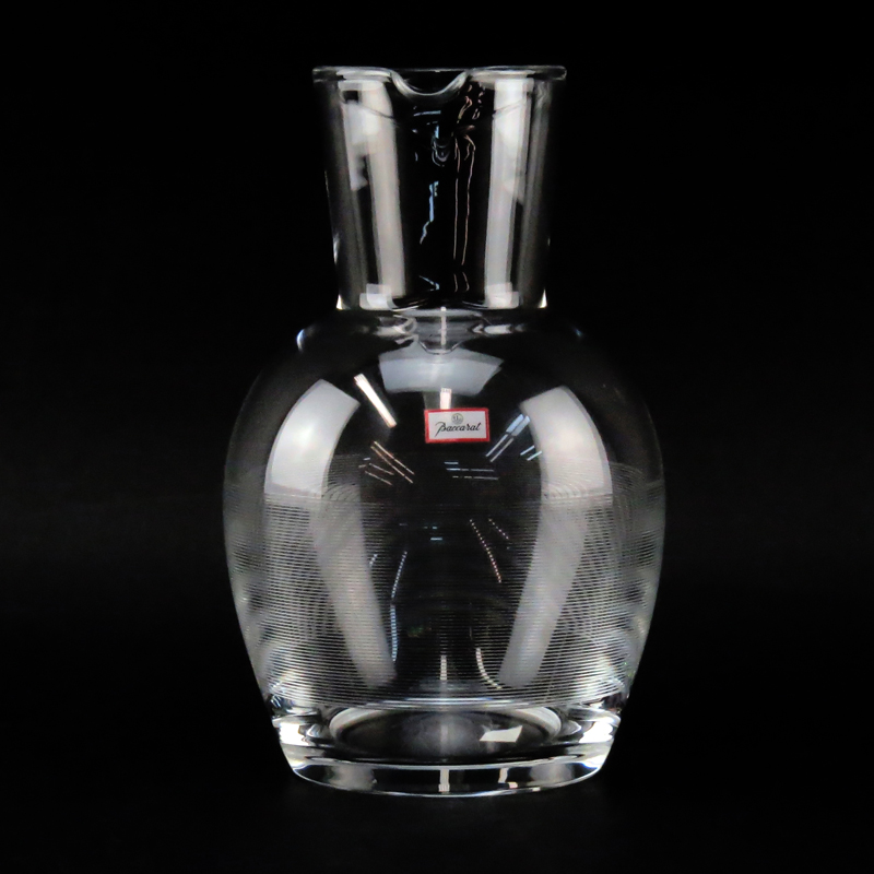 Baccarat Crystal Bedside Water Pitcher in Original Box #705874. Stamped on underside. Original store label and booklet included. Good condition. Measures 8" H. Shipping $48.00 (estimate $100-$200)