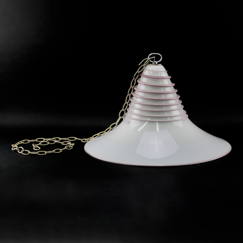 Vintage Murano Glass Ceiling Fixture. White glass with applied pink "snake". Unsigned. Good condition. Measures 12" H x 22" Dia. Shipping: Third party. (estimate $100-$200)