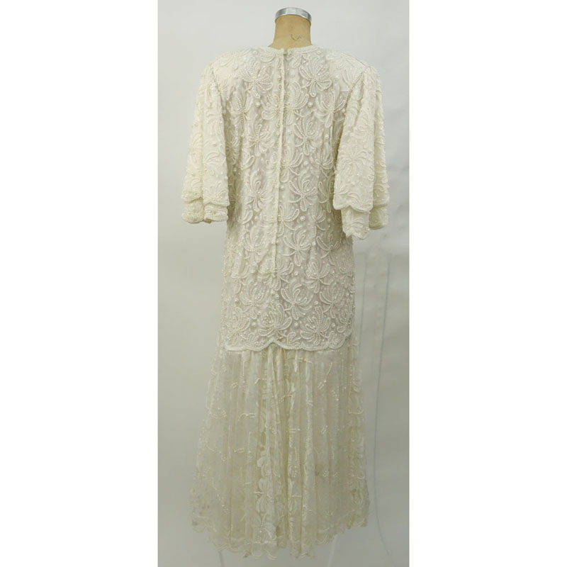 Vintage Ivory Color Beaded and Sequined Evening DressVintage Ivory Color Beaded and Sequined Evening DressVintage Ivory Color Beaded and Sequined Evening Dress