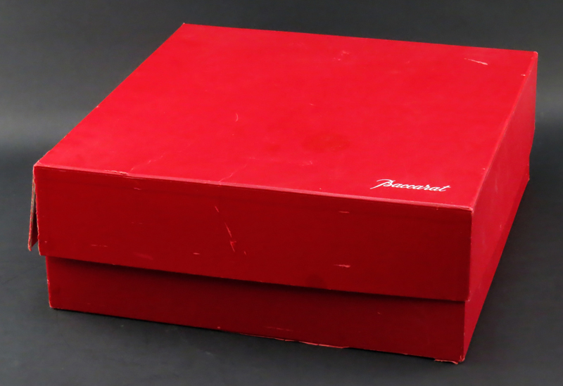 Large Baccarat "Gingko" Clear Crystal Vase in Original Box #792579. Includes Baccarat sticker label, stamped on obverse and underside. Good condition. Measures 12" H x 11-1/2" W x 4-1/4" Depth. Shipping: Third party (estimate $1500-$2500)
