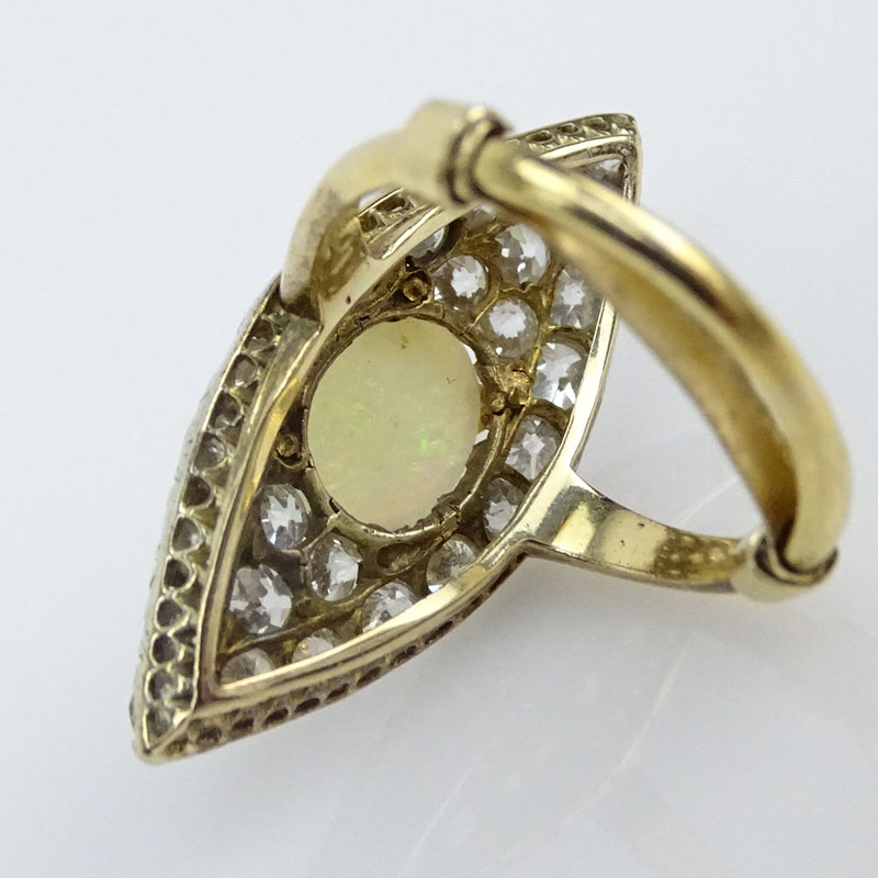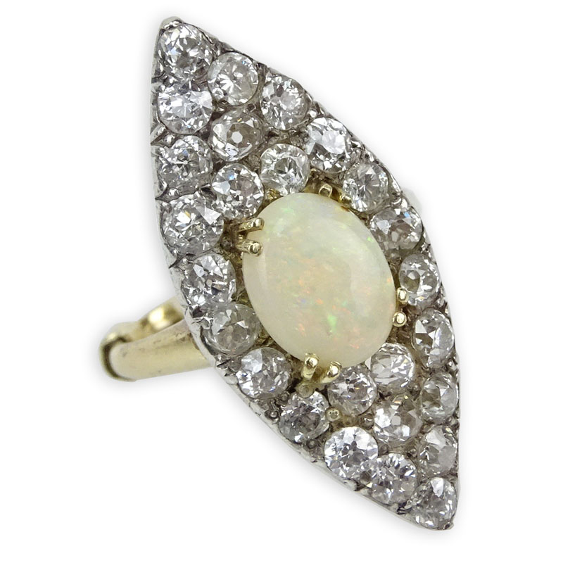 Victorian Old European Cut Diamond, Opal, Platinum and 18 Karat Yellow Gold RingVictorian Old European Cut Diamond, Opal, Platinum and 18 Karat Yellow Gold Ring