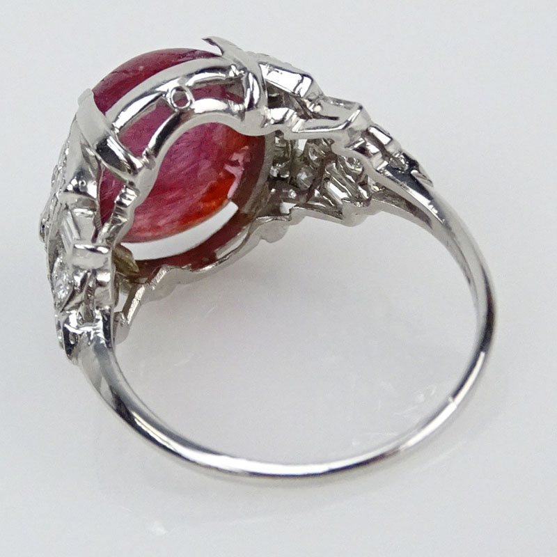Lady's Art Deco Cabochon Ruby, 1.10 Carat Diamond and Platinum Ring. Ruby measures 15mm x 11.5mm. Diamonds Lady's Art Deco Cabochon Ruby, 1.10 Carat Diamond and Platinum Ring. Ruby measures 15mm x 11.5mm. Diamonds Lady's Art Deco Cabochon Ruby, 1.10 Carat Diamond and Platinum Ring. Ruby measures 15mm x 11.5mm. Diamonds