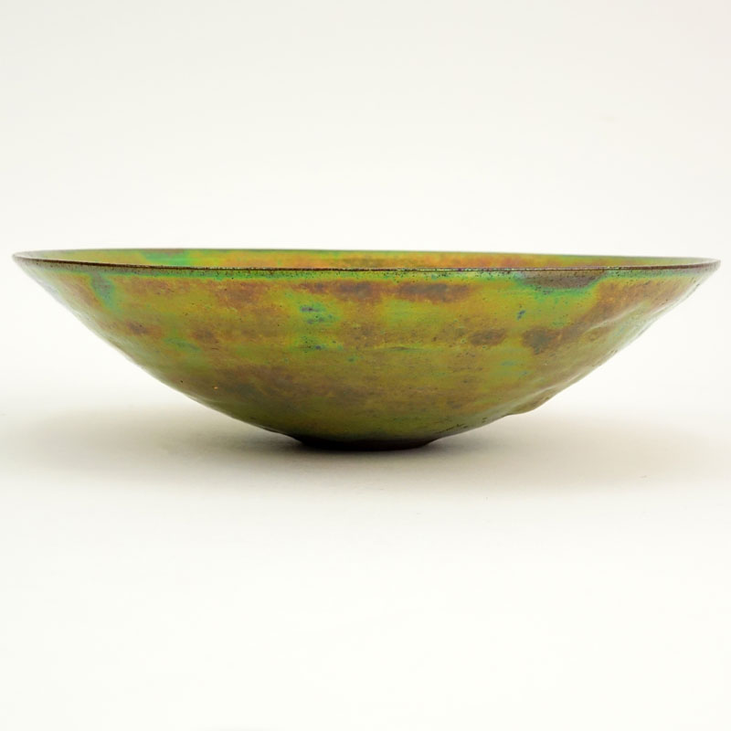 Beatrice Wood, American (1893-1998) Iridescent glazed earthenware bowl. Signed BEATO. Good condition. Measures 2-1/4" H x 8-3/8" Dia. Original Gallery Label from Garth Clark Gallery, Los Angeles. Shipping $85.00 (estimate $1500-$2500)