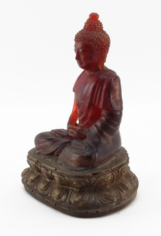 19/20th Century Chinese Cherry Amber Seated Buddha Figurine