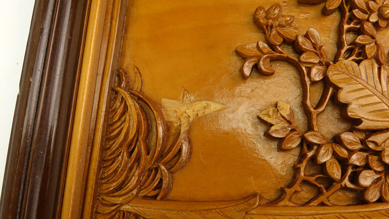 Pair of Mid 20th Century Chinese Carved Wood Relief Panels