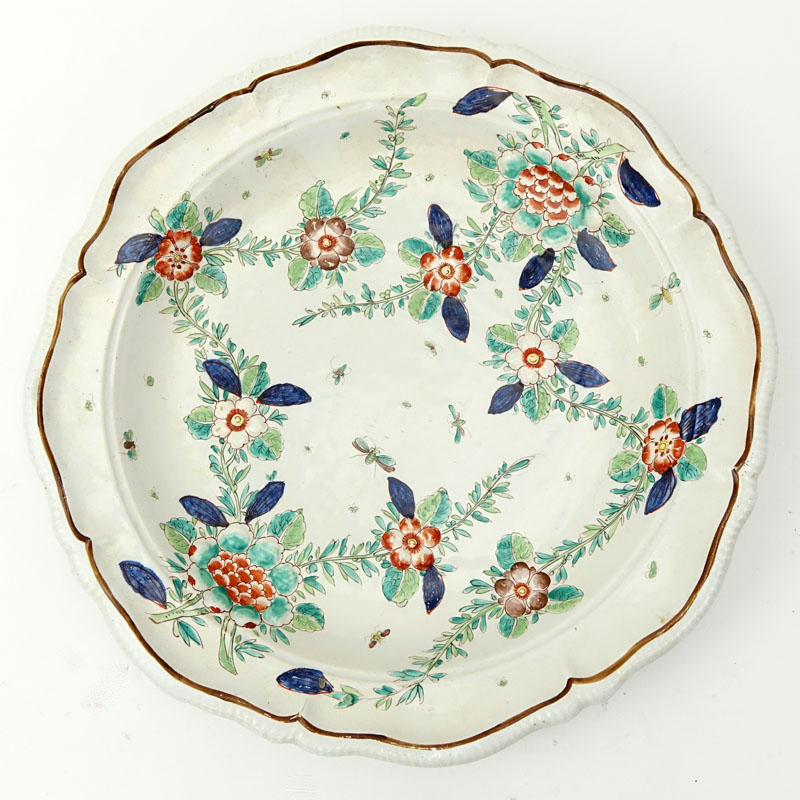 Antique Faience Raised Flower Hand Painted Ceramic Charger