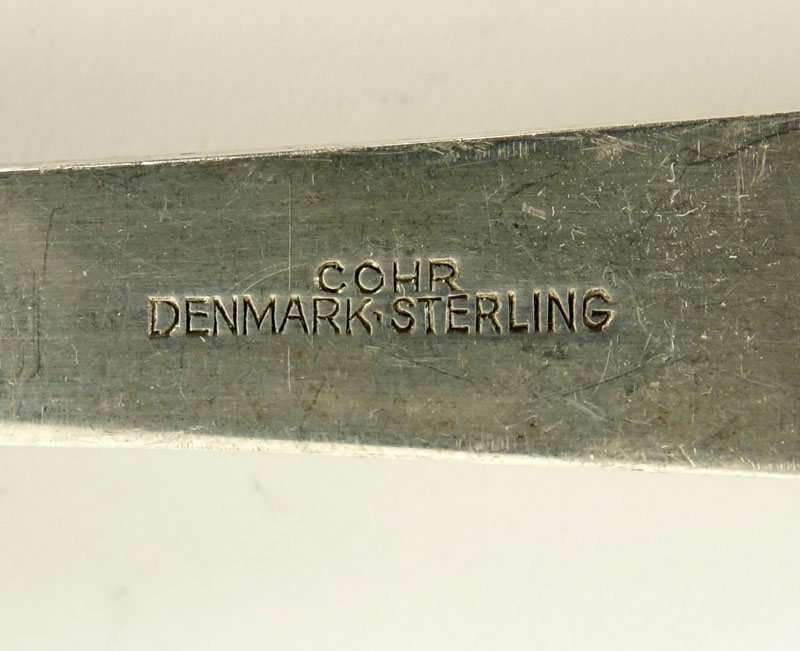 Grouping of Two (2) Sterling Silver Serving Spoons. Includes: Tiffany & Co. "Faneuil" vegetable serving spoon (9-5/8" L, monogrammed), Cohr "Olympia" bouillon spoon (5-3/8" L). Both spoons need cleaning otherwise good condition. Total weighs approx. 6 troy ounces. Shipping $38.00 (estimate $150-$250)