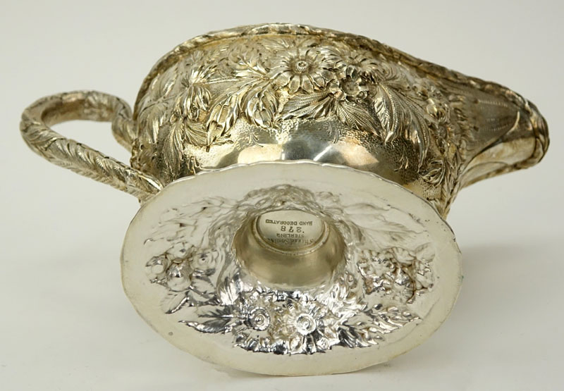 S. Kirk & Son Sterling Silver Repousse Sauce Boat. Signed. Good condition. Measures 5-3/4" H and weighs approx. 9.99 troy ounces. Shipping $38.00 (estimate $200-$400)