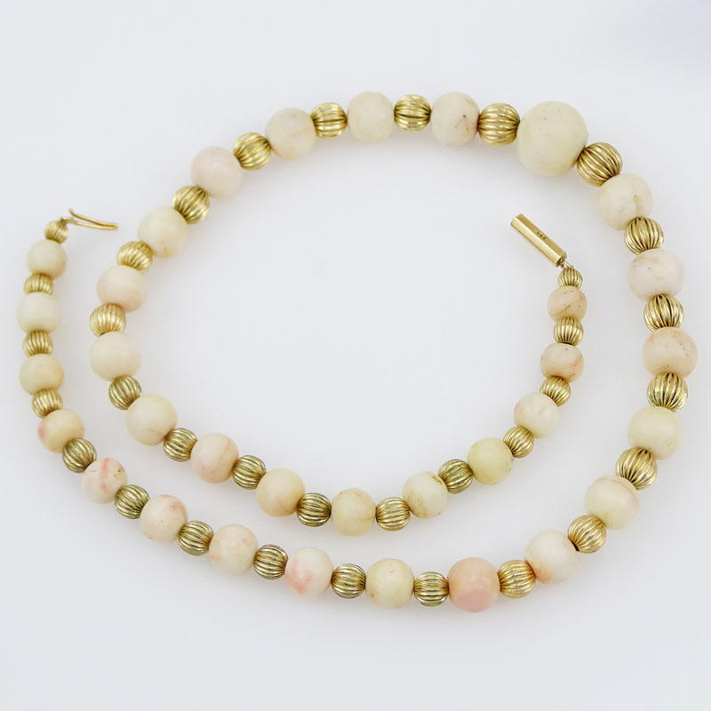 Vintage Angel Skin Coral 14 Karat Yellow Gold Bead Necklace