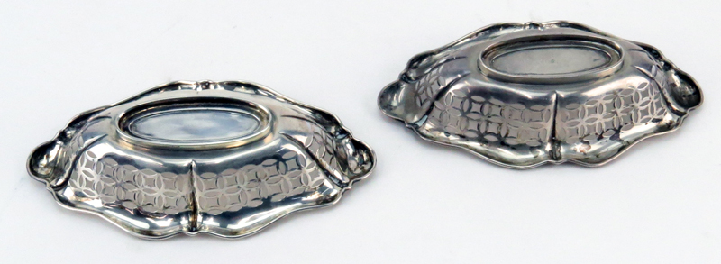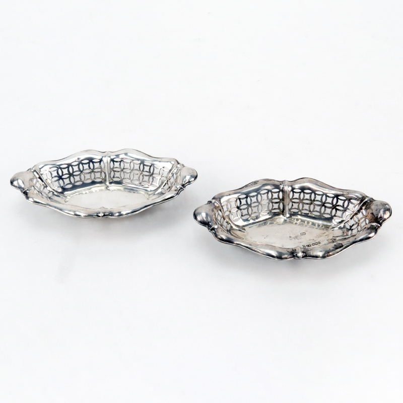 Two (2) John Round & Son Ltd, Sterling Silver Pierced Dishes. Hallmarked on bowl, numbered 4065 on underside. Needs cleaning, normal scuffs. Measures 1-1/2" H x 6-1/2" W. Weighs approx. 4.5 Troy ounces. Shipping $28.00 (estimate $50-$100)