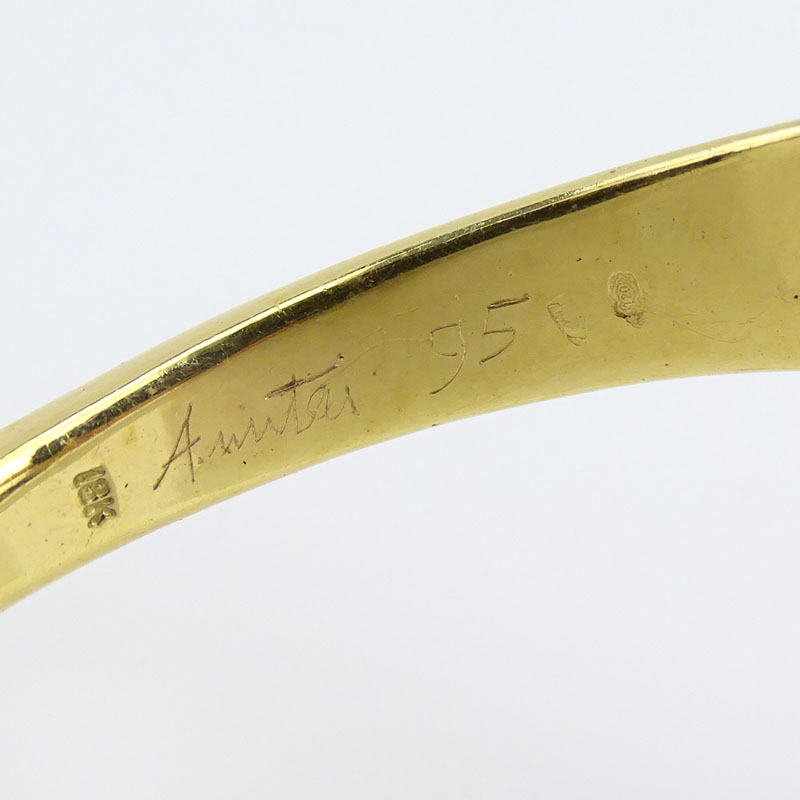 Amitai Kav, Israeli Circa 1995 Heavy 18 Karat Yellow and White Gold Modern Design Folding Horse Bit style Bracelet. Signed and dated. Minor surface wear from normal use. Measures 1" W, 2-3/8" interior diam. Approx. weight: 86.9 grams. Shipping $32.00 (estimate $1500-$2000)