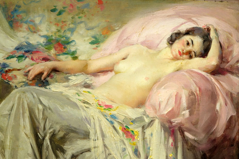 Sergei Semenovitch Egornov, Russian (1860-1920) Oil on Artist Board, Reclining Nude