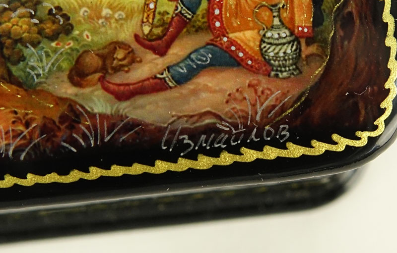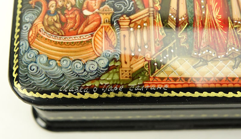 Collection of Five (5) Russian Lacquered Boxes. Large box contains 4 smaller boxes. As New condition. Large box measures 7-1/4" x 9-1/4. Shipping $52.00 (estimate $300-$400)