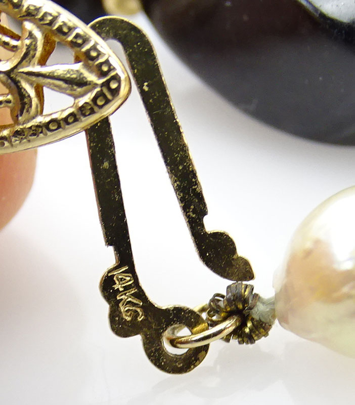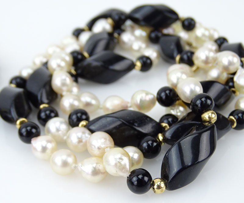 Two (2) Pearl, Black Onyx and Bead Necklaces. Clasp signed 14K. Good condition. Longer measures 17-1/2" L. Shipping $30.00 (estimate $100-$200)