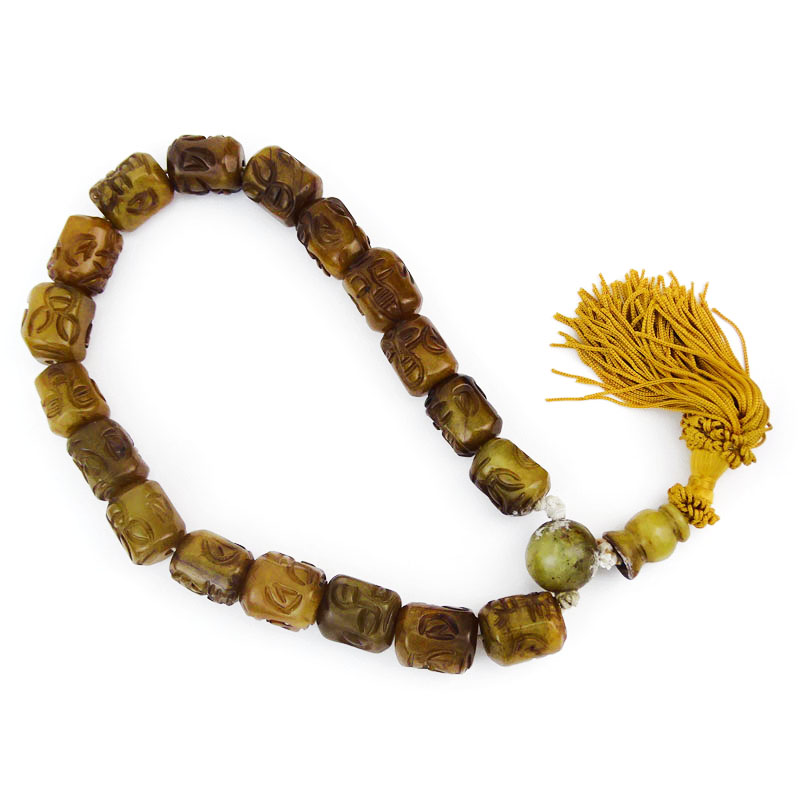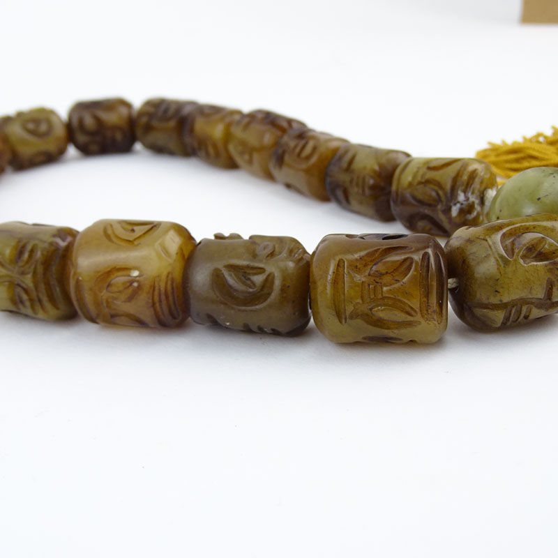 Chinese Carved Jade Buddha Head Prayer Beads