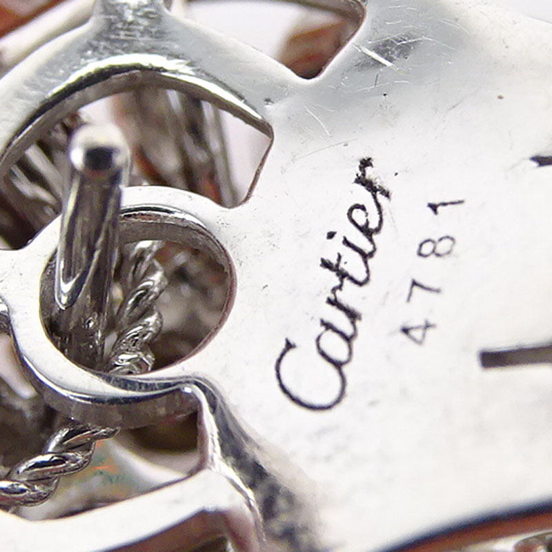 Very Fine Vintage Cartier, France Diamond, Ruby, Sapphire and 18 Karat White Gold Trembler Earrings