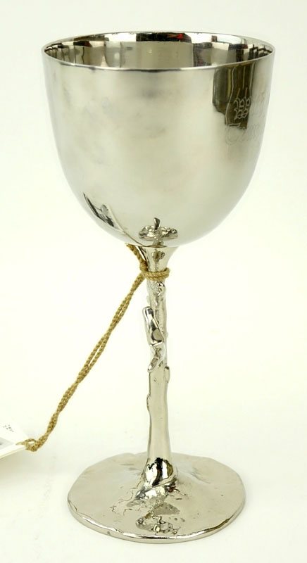 Michael Aram Judaica Handmade Stainless Steel Nickel-plate "Tree Of Life" Kiddush Cup. Signed. Engraved. Good condition. Measures 6-1/2" H. Shipping $43.00 (estimate $100-$150)