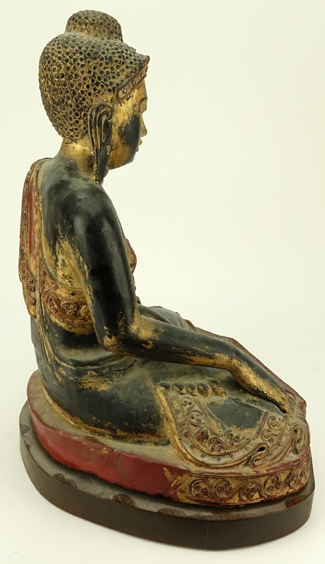 Vintage Gilt Indo-Chinese Carved Jeweled Polychrome Seated Buddha