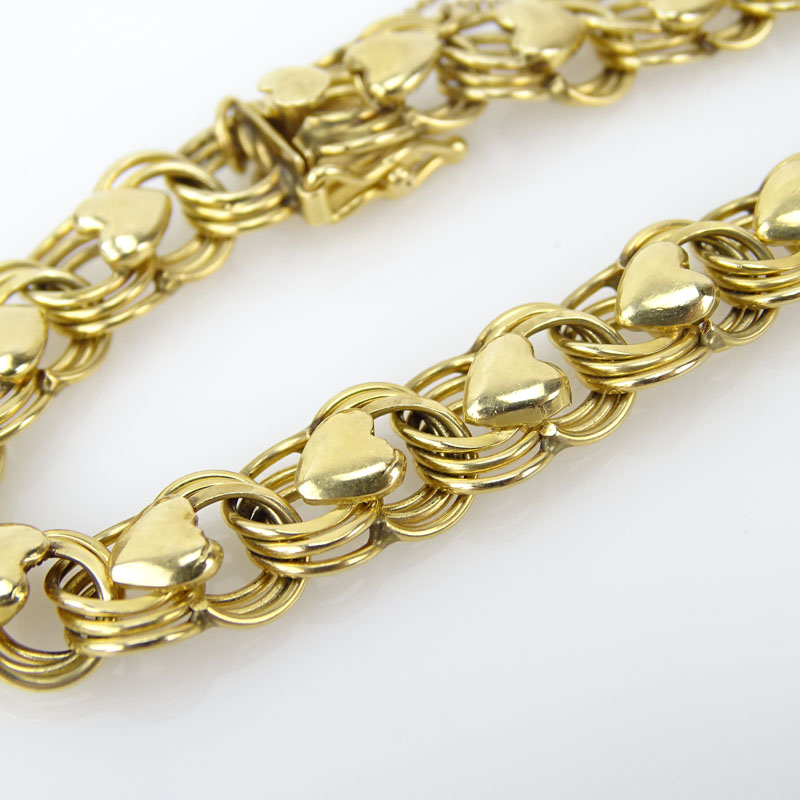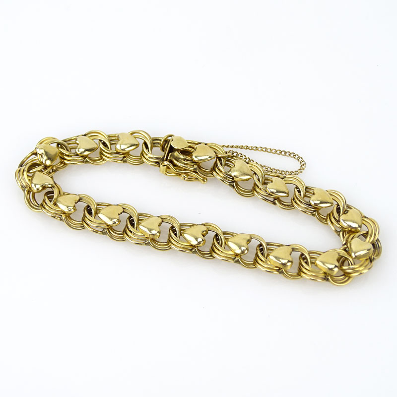 Vintage 14 Karat Yellow Gold Charm Bracelet. Stamped 14K. Good condition. Measures 7" L, 3/8" W. Approx. weight: 18.9 grams. Shipping $30.00 (estimate $300-$400)