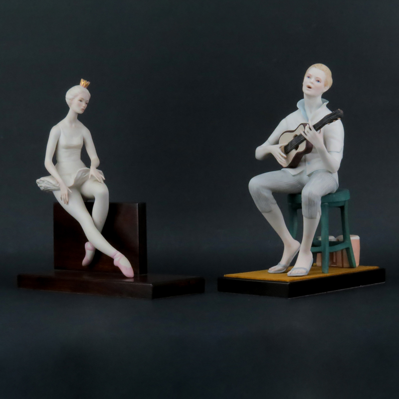 Two (2) Cybis Bisque Porcelain Figurines Mounted on Wooden Bases. Includes: Folk Singer, Ballerina On Cue. All pieces signed and in good condition with no chips, cracks or crazing. Tallest measures 12" H. Shipping: Third party. (estimate $200-$300)