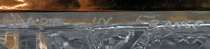 Modern Baccarat Style Crystal and Gilt Bronze Casket Form Box. Scroll work on bronze with foliage and drape relief crest, pin wheel style cut work on crystal. Rubbing, good condition. Measures 7-1/2" H x 7" W x 4-1/2" Depth. Shipping $62.00 (estimate $200-$300)