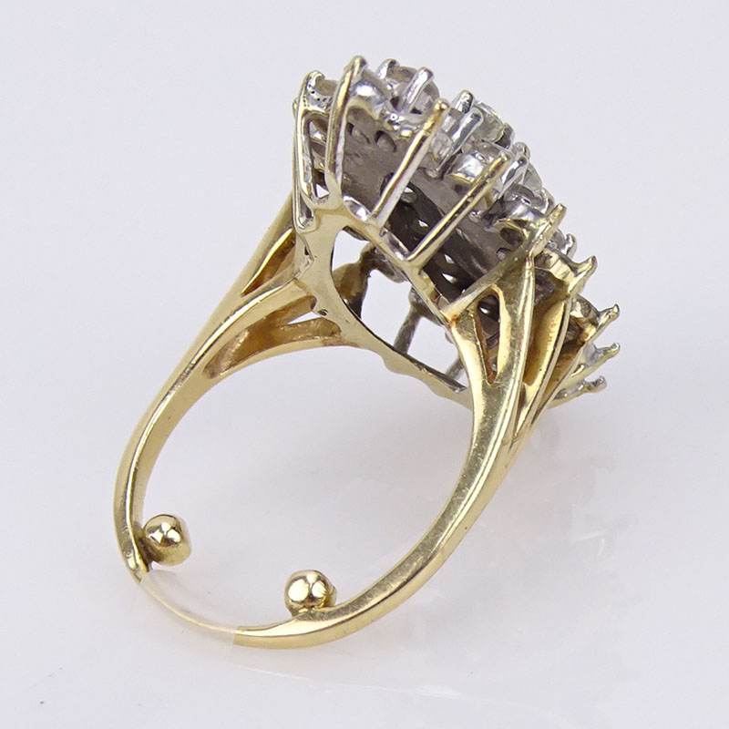 Vintage Round Brilliant Cut Diamond and 14 Karat Yellow Gold Cluster Ring. Missing diamonds. Unsigned. Ring size 5-1/2 (with sizing balls). Approx. weight: 8.6 grams. Shipping $28.00 (estimate $300-$400)