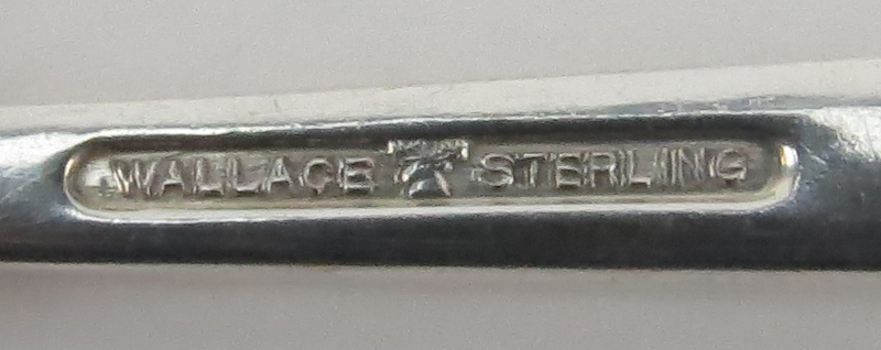 Hundred Twenty Two (122) Piece Wallace "Grand Baroque" Sterling Silver Flatware. Includes: 24 knives, 12 flat handle butter spreader, 24 forks, 12 salad forks, 12 seafood forks, 24 teaspoons, 12 round soup spoons, and 2 serving spoon. Circa 1941, stamped on handle. Needs a minor cleaning. Largest knife measures 9-1/2" Long, largest forks measures 7-7/8" Long. Total weighs approx. 225.82 Troy ounces with knives, 146.87 Troy ounces without knives. Box is for display purposes only. Shipping $185.00 (estimate $2000-$3000)