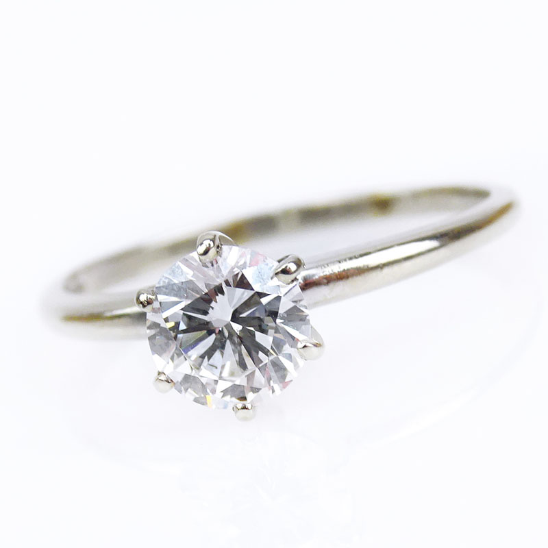 Vintage Approx. 1.0 Carat Round Brilliant Cut Diamond and 14 Karat White Gold Engagement Ring. Diamond G-H color, SI1 clarity. Stamped 14K. Good condition. Ring size 9. Approx. weight: 2.4 grams. Shipping $28.00 (estimate $2000-$4000)