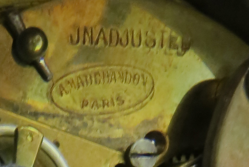 19/20th Century French Bronze and Porcelain Figural Clock. Works and bottom signed. Small cracks to dial, rubbing or in good condition. Measures 11-1/4" H x 7-3/4" w x 5-1/8". Shipping $68.00 (estimate $400-$600)
