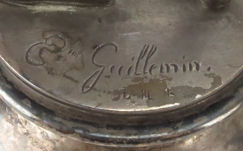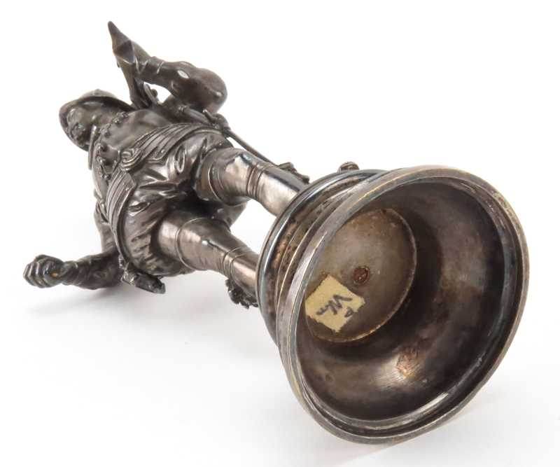 Modern Silvered Bronze Figurine On Marble Base "Armored Soldier" Signed Guillemin. It appears the soldier was holding an object in his right hand, now missing. Measures 12-3/4" Including base. Shipping $62.00 (estimate $300-$400)