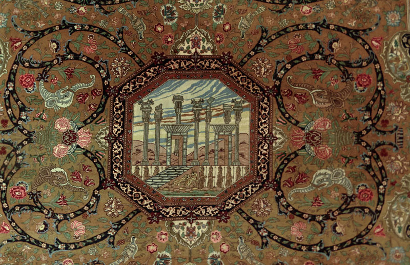Fine Quality Palace Size Semi Antique Persian Tabriz Carpet. Decorated with pendant ornamental center medallion, meandering floral ground, and multiple floral corner brackets. All original with no restorations, good condition. Measures 204" H x 135" W. Shipping: Third party. (estimate $10000-$15000)