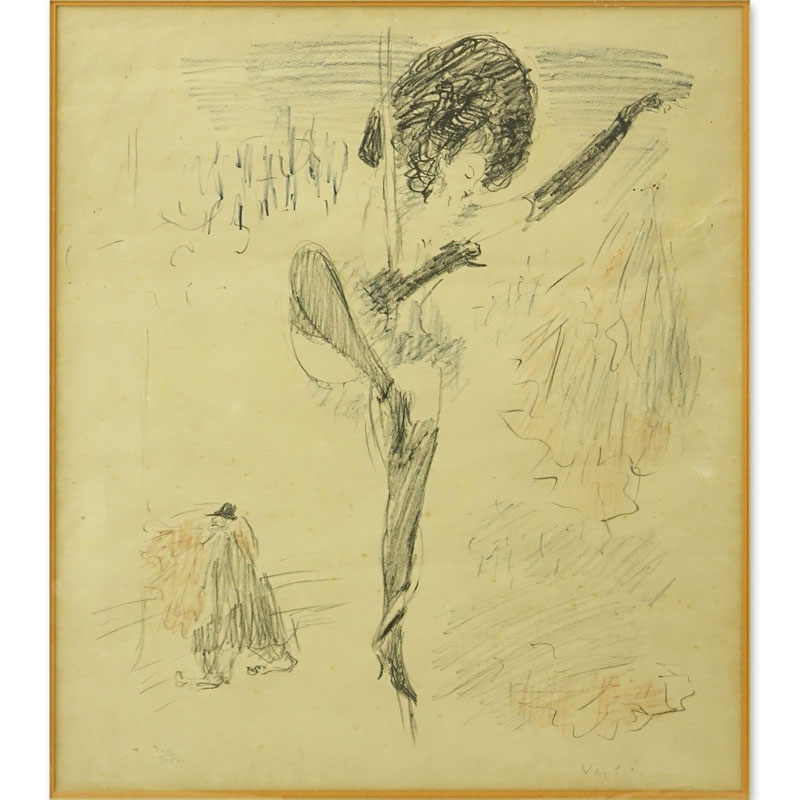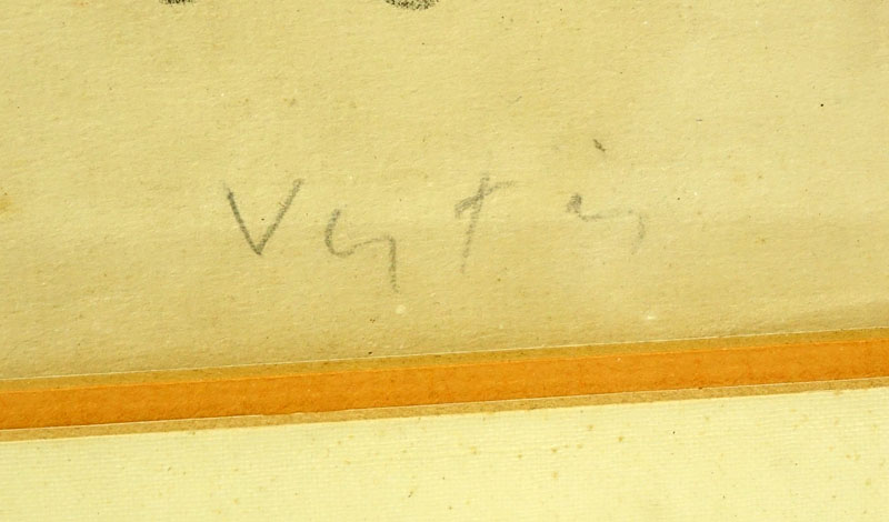Marcel Vertès, French (1895-1961) Print "Can Can Dancer" Signed in pencil and numbered ?/250. Toning, creases, tears. Measures 18" x 16" (sight), frame measures 24" x 22". Shipping $115.00 (estimate $150-$250)