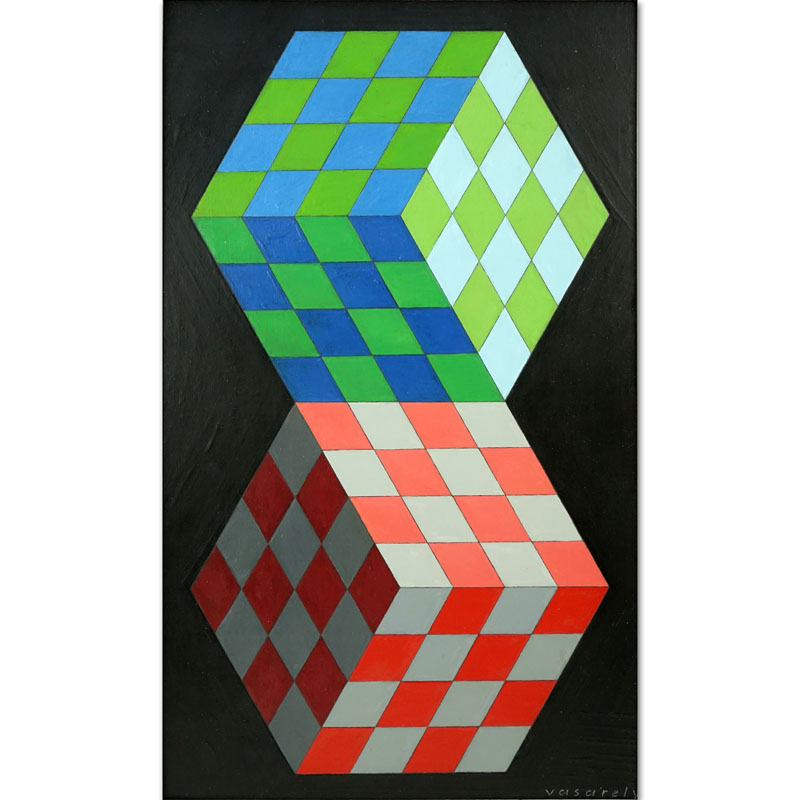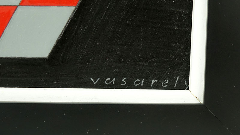 Attributed to: Victor Vasarely, French/Hungarian (1906-1997) Oil on Artist Board, Abstract Composition. Signed lower right. Good condition. Measures 20" H, 12" W; frame measures 21-1/4" H, 13-3/8" W. Shipping $125.00 (estimate $1200-$1800)