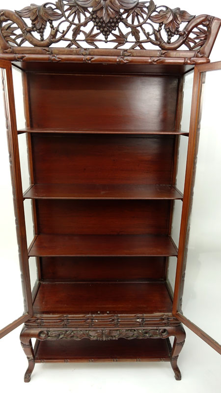 Mid Century Chinese Carved Teak Wood and Glass Display Case.